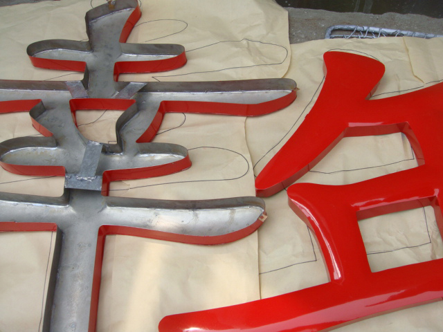鐵皮烤漆字 鐵皮烤漆字可以根據字面意思分為兩部分進(jìn)行理解,第一部分是鐵皮,第二部分是烤漆。鐵皮烤漆由于顏色多變,可以根據客戶(hù)的要求制作不同的顏色而受到廣大消費者的喜愛(ài)??梢允羌で檠笠绲募t色,可以是明亮的黃色等。 鐵皮烤漆發(fā)光字工藝和不銹鋼發(fā)光字工藝大體相差不多。都是要用機械進(jìn)行加工。