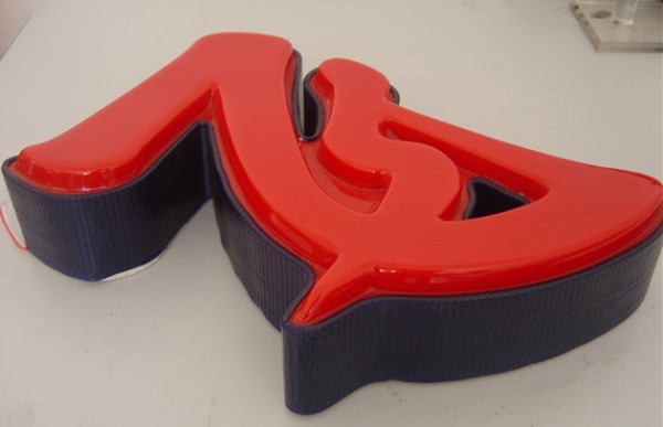 3、吸塑成型好后,就是用亞克力銑邊機進(jìn)行修邊等后續工序了。同時(shí),側面做好鐵皮烤漆邊,鋸出字內徑同樣大小的PVC板做底板,粘上LED字,然后合起來(lái),基本上就成了。